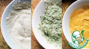 Для удобства, я сразу разделила в три тарелочки - это, примерно, по 2 ст. л.
