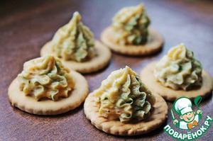 Если нужно сразу подавать, тогда все три паштета слегка перемешать (не сильно!) и порционно выложить на печенье/хлеб/крекеры.