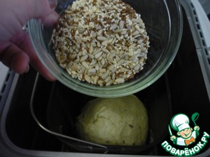 В середине замеса, после сигнала, добавляем перемешенные семечки, семена льна и кунжут. Все. Ждем...
