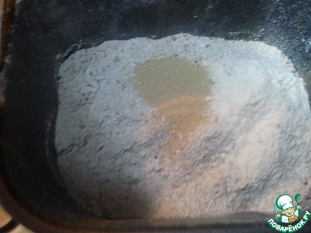 Добавляем ржаную, пшеничную муку и дрожжи. Т. к. у меня хлебопечь не приспособлена для ржаного хлеба, то без пшеничной муки не обойтись. А для цвета приходиться добавлять растворимый кофе и какао.