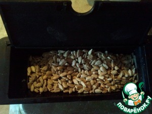 В моей хлебопечи есть автоматический диспенсер для добавок. В него я положила семечки подсолнуха. У кого такого нет, семечки нужно добавлять после специального сигнала в хлебопечке (обычно минут через 20 после начала замеса). Можно добавить изюм, но мне не нравится.