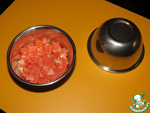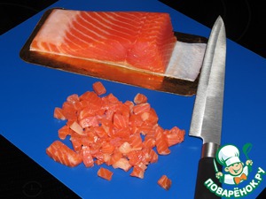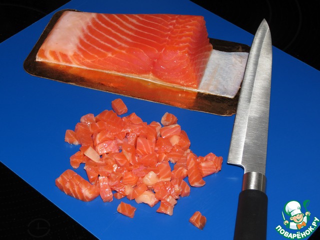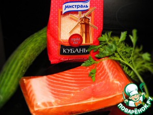 Промазывать не нужно: жирный лосось и сочный огурец не вызывают сухости блюда.