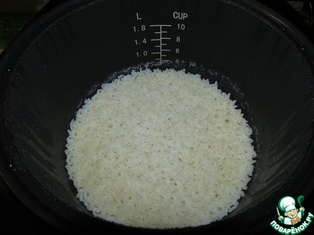 Объём воды, которую наливаем в кастрюлю, должен быть в 2 раза больше, чем объём риса (например, на полстакана риса – стакан воды).
