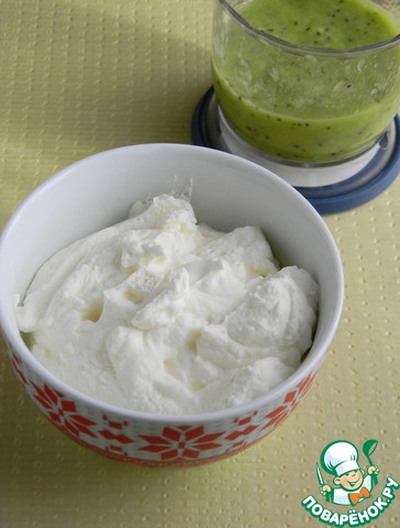 Украшаем взбитыми сливками и киви.