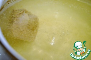 Приготовить бульон. Варила говядину в течение часа на медленном огне, процедила.