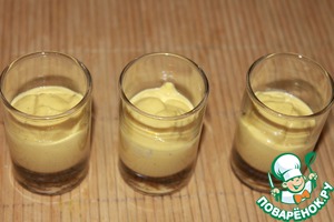 Срвируем нанизывая тефтельки на шпажку и укладывая на рюмочку с пряным соусом из семолины.
