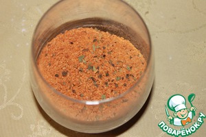 Смешиваем панировочные сухари с травками (майоран, орегано и тимьян) у меня была смесь трав для пиццы, я ее и использовала