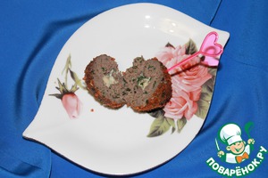 Из фарша делаем лепешечку, вкладываем внутрь кусочек сыра Дорблю