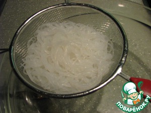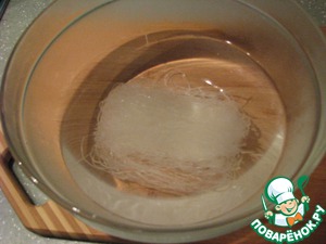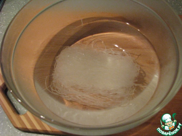 Рисовую бумагу опускаем в теплую воду на 5 секунд.