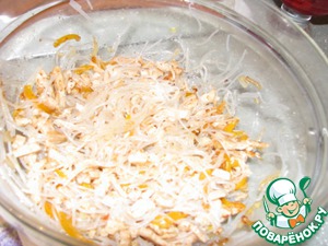 Смешиваем курино-овощную смесь с фунчезой. -