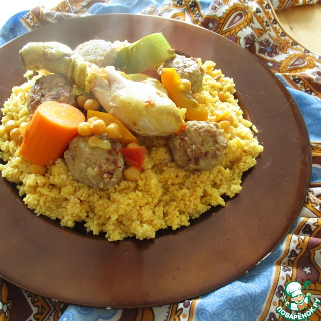 Рецепт «Кускус по-мароккански с курицей, овощами и мясными тефтелями»: