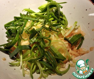 • Салат положим сверху на каждый порционный кусок.