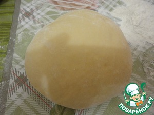 Тесто перемешать, оставить маленький кусочек для украшения (но совсем и не обязательно). Форма для выпечки должна быть не менее 28 см. Смазать форму оливковым маслом. Тесто раскатать и выложить в форму так, чтобы края свисали.
