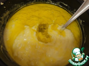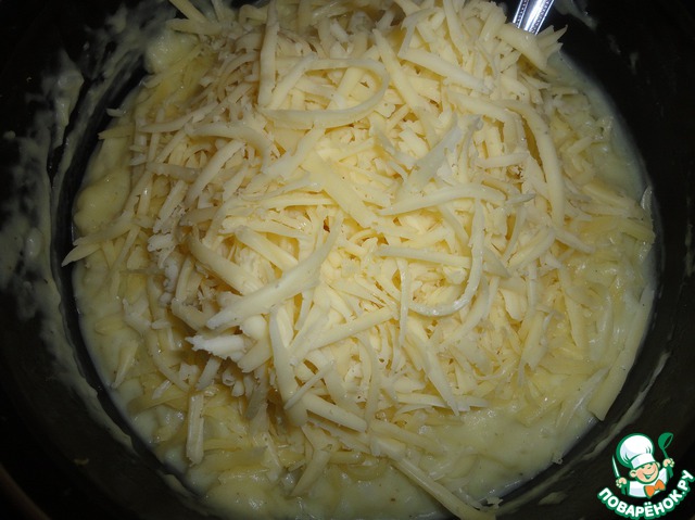 Как только картофель сварится, воду слить и размять картошку. Влить в горячее молоко и сделать пюре. Используем блендер, чтобы не было комочков. -