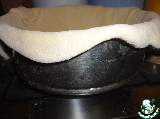 Сначала замесим тесто. В теплой воде разведём дрожжи, затем добавим остальные ингредиенты и замесим. Накрыть полотенцем и дать постоять.