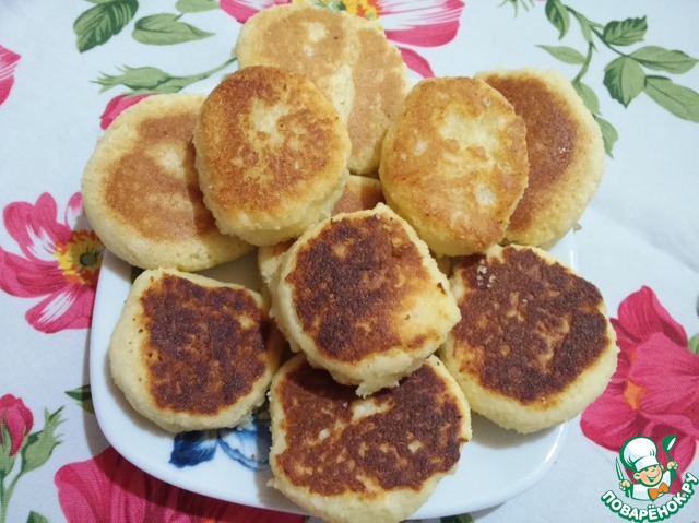 ЗЫ. Я попробовала заменить семолину нашей обычной манной крупой и приготовила еще одну партию лепешек. Получилось немного не то, что на фото. Лепешки из манки оказались слишком нежные и разваливались на сковороде при переворачивании, поэтому если рискнете повторить, то делайте их небольшого размера, как сырники, обязательно обваливайте в манной панировке и хорошо зарумянивайте корочку, чтобы лепешка держала форму. Ну а на вкус лепешки из манки нам понравились даже больше, чем из семолины, они получились еще нежнее.
