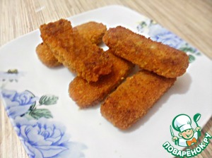 Сегодня в качестве начинки я взяла куриные палочки, проверенного мною неоднократно, производителя. В них точно больше мяса, чем в колбасных изделиях. Но частенько я и ими не гнушаюсь-беру молочные сосиски или копченые колбаски. Вобщем, сегодня палочки-предварительно слегка обжареные. Т. к. для моих формочек они оказались длинноваты, впоследствии они были порезаны пополам.