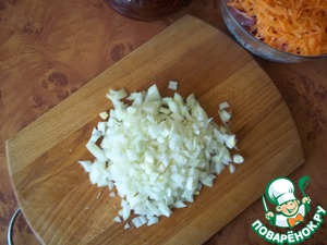 Лук мелко нарезать.