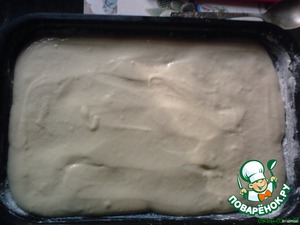 Протвень смазать маслом или маргарином, присыпать мукой, вылить тесто, распределить его равномерно по протвеню.