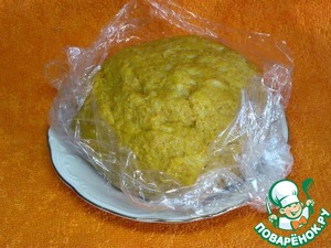 Произведем замес теста, завернем его в пленку и поставим на 1 час в холодильник.