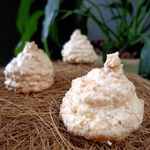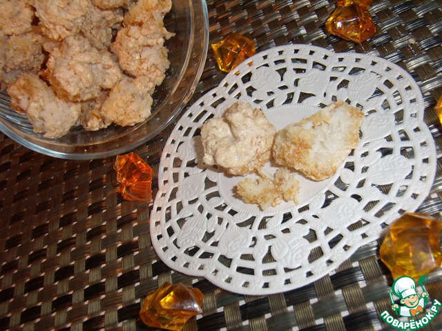 Получается очень легкое и нежное печенье, которое напоминает маленькие печенья безе, только с кокосовой стружкой внутри!