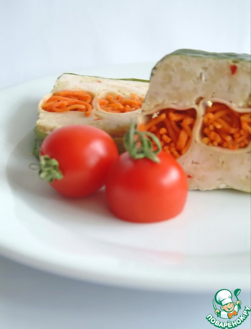 Макаронные трубочки в следующий раз отваривать до полу готовности не буду, только положу их в кипяток на пару минут. Они в любом случае, как оказалось, "дойдут" под соком куриного филе и в разрезе будут более аккуратными. Укладывать их нужно в форму выстеленную фаршем со всех сторон, чтобы они не касались порея. Тогда они опять-таки будут держать форму за счет фарша. И лук с чесноком я попробую поджарить в следующий раз. Мне кажется что так будет еще вкуснее. К сожалению в оригинальном рецепте повар не вдавался в такие подробности, но их нужно учитывать, чтобы в следующий раз все получилось идеально.