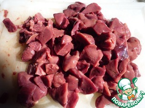 Промыть печень, нарезать небольшими кусочками, убрав ненужное.