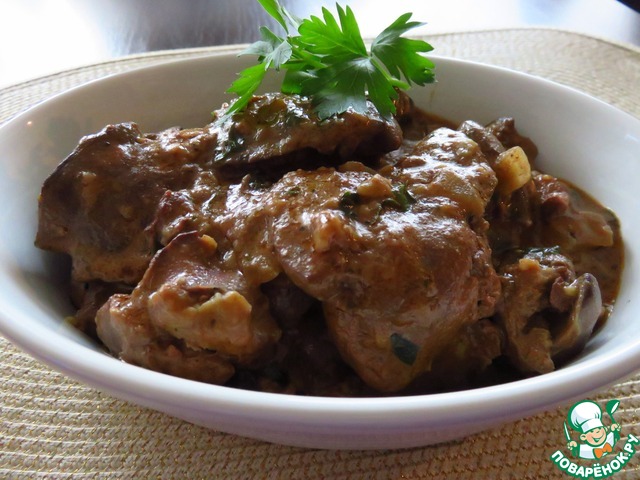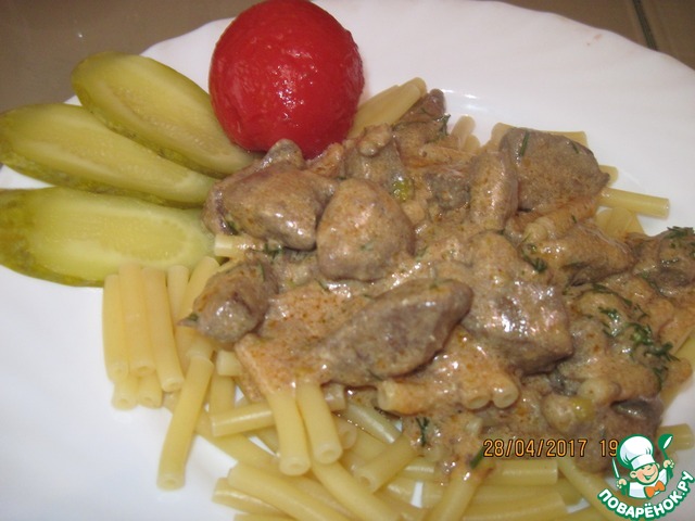 Рецепт «Печень куриная в сметанно-томатном соусе»: