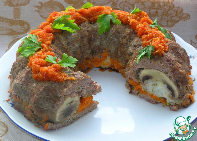 Ингредиенты для "Мясное кольцо с грибами и рисом":