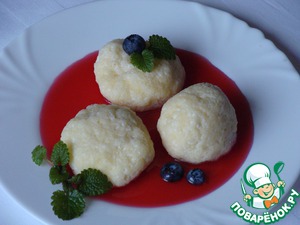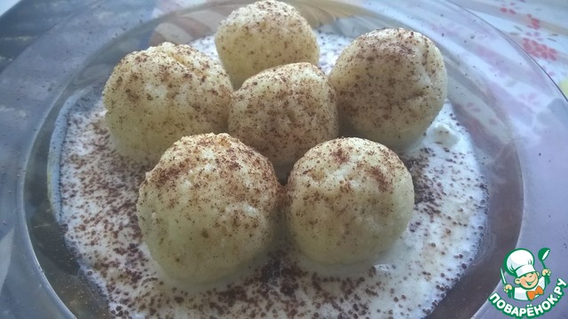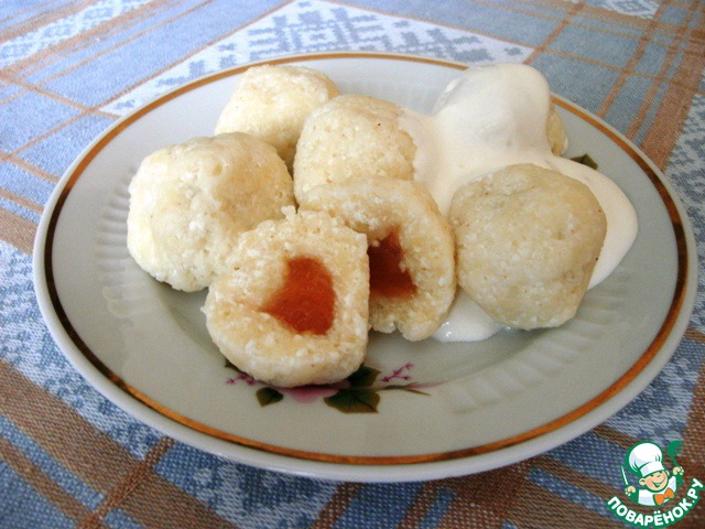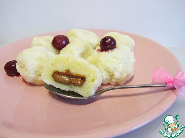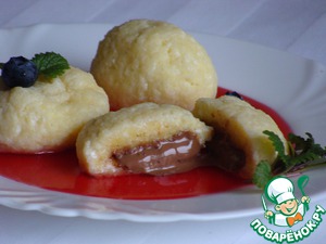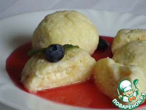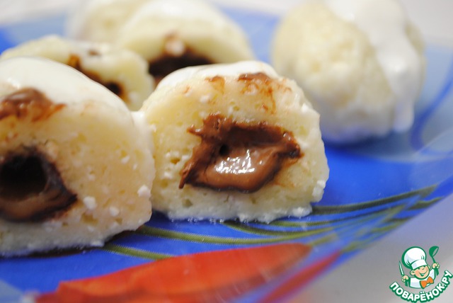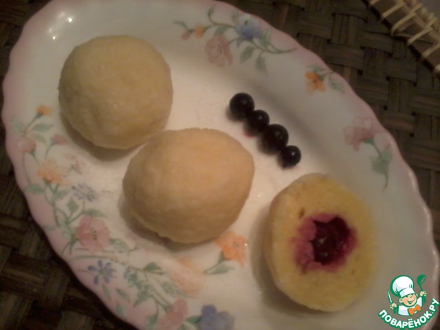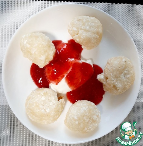 Этот десерт возник спонтанно при приготовлении другого блюда. Нежные творожные шарики с вытекающей начинкой - ими можно наслаждаться каждый день и не стыдно подать на праздничный стол. Тем более, что готовятся они буквально 20 минут. И не содержат ни капли муки!