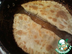 В общем, был сделан вывод, что тесто для чебуреков лучше всего замешивать на молоке с добавлением масла. Дальше было сказано, что, очевидно, для приготовления чебуреков можно использовать и остальные традиционные ингредиенты (кефир, яйцо и т. п.), но это надо уметь. Поэтому и готовим тесто из того, что для неумеющих готовить чебуреки будет точно беспроигрышным. -