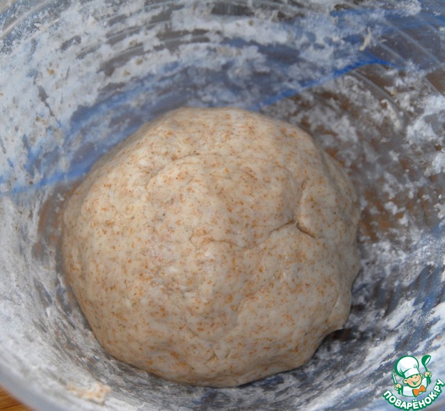 Заливаем стакан кипятка, размешиваем, постепенно вводим муку, вымешиваем мягкое эластичное тесто. Оставляем тесто отдохнуть на 30 минут. -