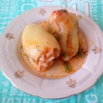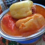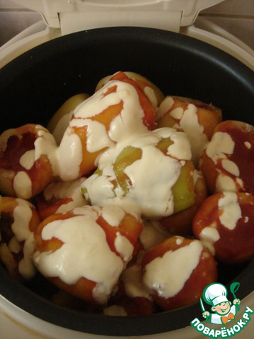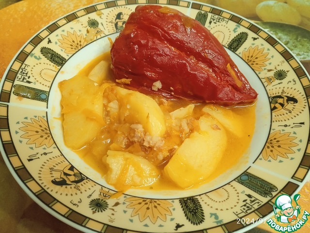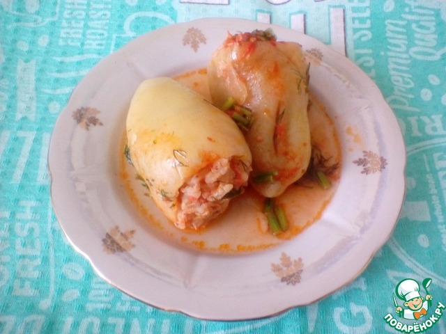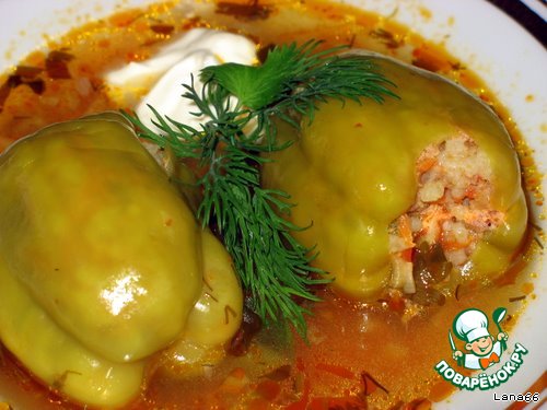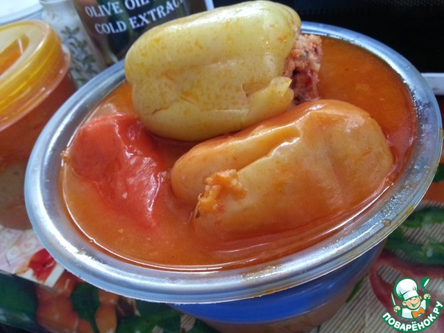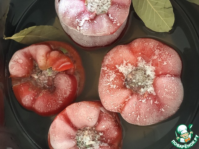 Уложить в казан с бульоном и добавить кипятка так, чтобы перчики не касались дна. Хотя это на любителя. Я и моя семья любим перчик с бульоном.