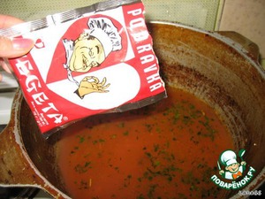В овощной бульон положить приправу Вегета. Пусть немного покипит.