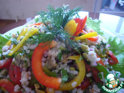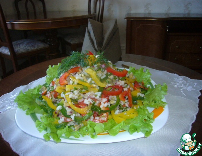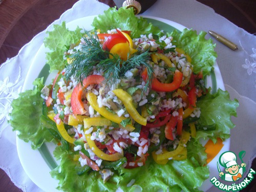 Предлагаю несложный в приготовлении салат с рисом арборио (я просто влюбилась в этот сорт риса, настолько покорил меня его мягкий, изысканный вкус) и перцами. Согласитесь, что белый цвет риса как нельзя лучше оттеняется разноцветными перцами. Салат хорош и в будни и в праздники. И 23-го февраля на столе он найдет и свое место и своих почитателей.