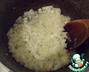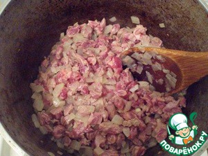 В казан налить раст. масло 5-6 ст. л. Лук обжарить в казане до золотистого цвета