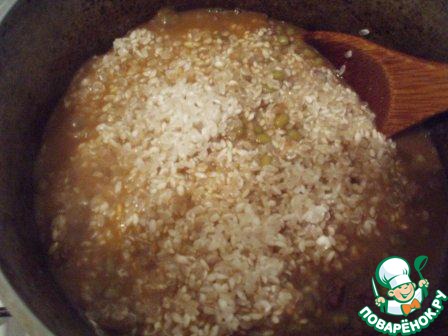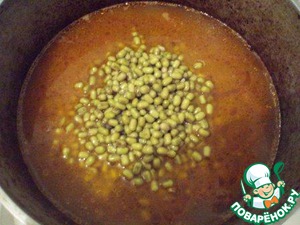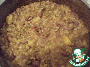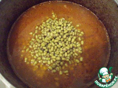 К мясу добавить замоченный маш