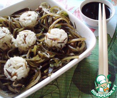 Готовую капусту подавать вместе с рисовыми «яйцами» и соевым соусом. Приятного аппетита!