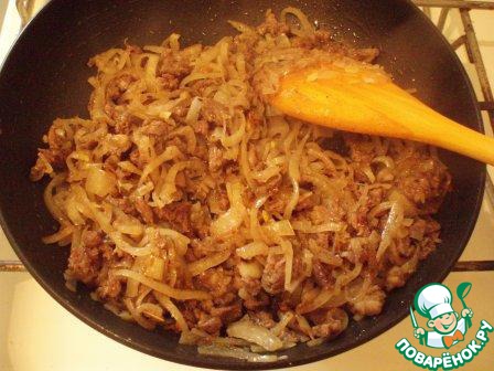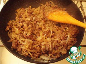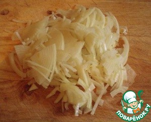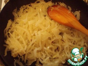 В сковороду налить немного растительного масла и обжарить на нем лук до золотистого цвета.