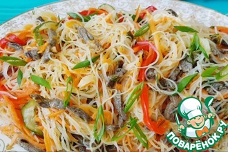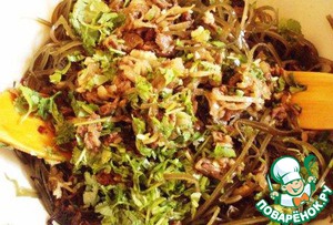 Так что или именно сухая морская капуста (её замачивают, запаривают и т.п. по инструкции на упаковке), или замороженная (продается в брикетах,но давно не видела в продаже в Мск), или уж из банки тогда.. (т.е. консервированную, но думаю, для этого салата надо брать ту, в которой минимум всяческих ароматизаторов.. Что-то вроде самой простой..без подсолнечного недезодорированного масла и всякого разного лука..)