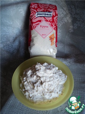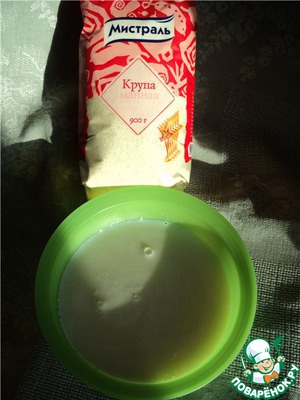 Варим густую манную кашу из 250 мл молока и двух столовых ложек манной крупы Мистраль. Оставляем охлаждаться. Чтобы не было жесткой корочки на поверхности каши, не забудьте закрыть ее крышкой!