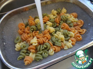 - Макаронные изделия / Макароны (спиралевидная вермишель, на этот раз у меня цветная, но это совсем не обязательно, в прошлый раз я делала с хорошей итальянской вермишелью не очень обычной формы) — 500 г
