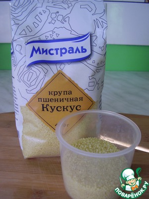 Крупу Кус-кус фирмы Мистраль положить в миску,
