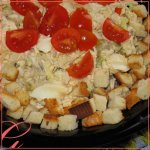 Вариантов этого салата много. Но с моим перечнем продуктов я не встретила. Поэтому предлагаю вам ознакомиться. Первый раз, когда попробовала салат не пропитавшимся, даже не поняла по вкусу, что за продукты в нем; после пропитки получается вкусный и нежный салатик.