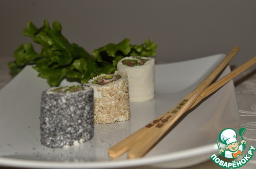 Меня заинтриговало это название в одной из итальянских кулинарных телепередач, в которых модно приглашать разных там знаменитостей. В итоге я воспроизвела идею неплохой закуски в стиле фингер-фуда, которая готовится быстро и выглядит... по-японски.