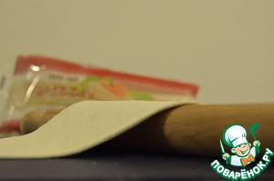 Затем нанести по внешней окружности ролла с помощью кисти сыр.