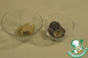 Обмакнуть внешнюю "сырную" сторону в семена мака. Я попробовала также с кунжутом. Если не любите ничего такого, либо нет под рукой, можно прекрасно обойтись без обсыпки.