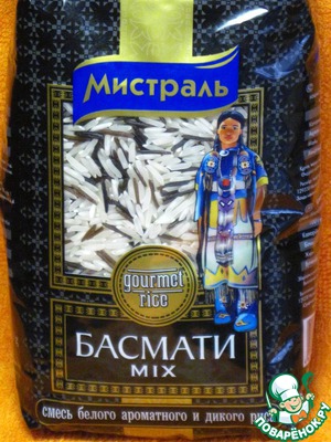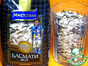 Для данного блюда используем рис Мистраль " Басмати mix", смесь белого ароматного и дикого риса. Блюдо с этим рисом выглядит празднично, нарядно.