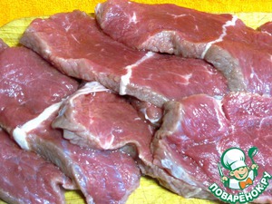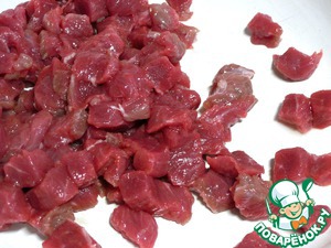 Мясо промоем, крупно нарежем на куски толщиной где-то 1 см.