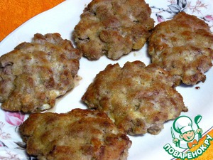 Из полученной массы сформируем плоские шницеля, обваляем их в панировочных сухарях и обжарим в разогретом растительном масле до румяной корочки.